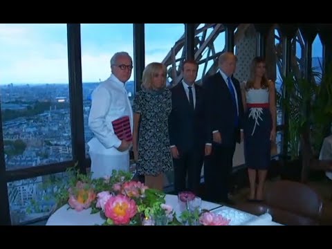 President Donald Trump and Melania Trump Eiffel Tower Dinner With Macron & First Lady 7/13/17