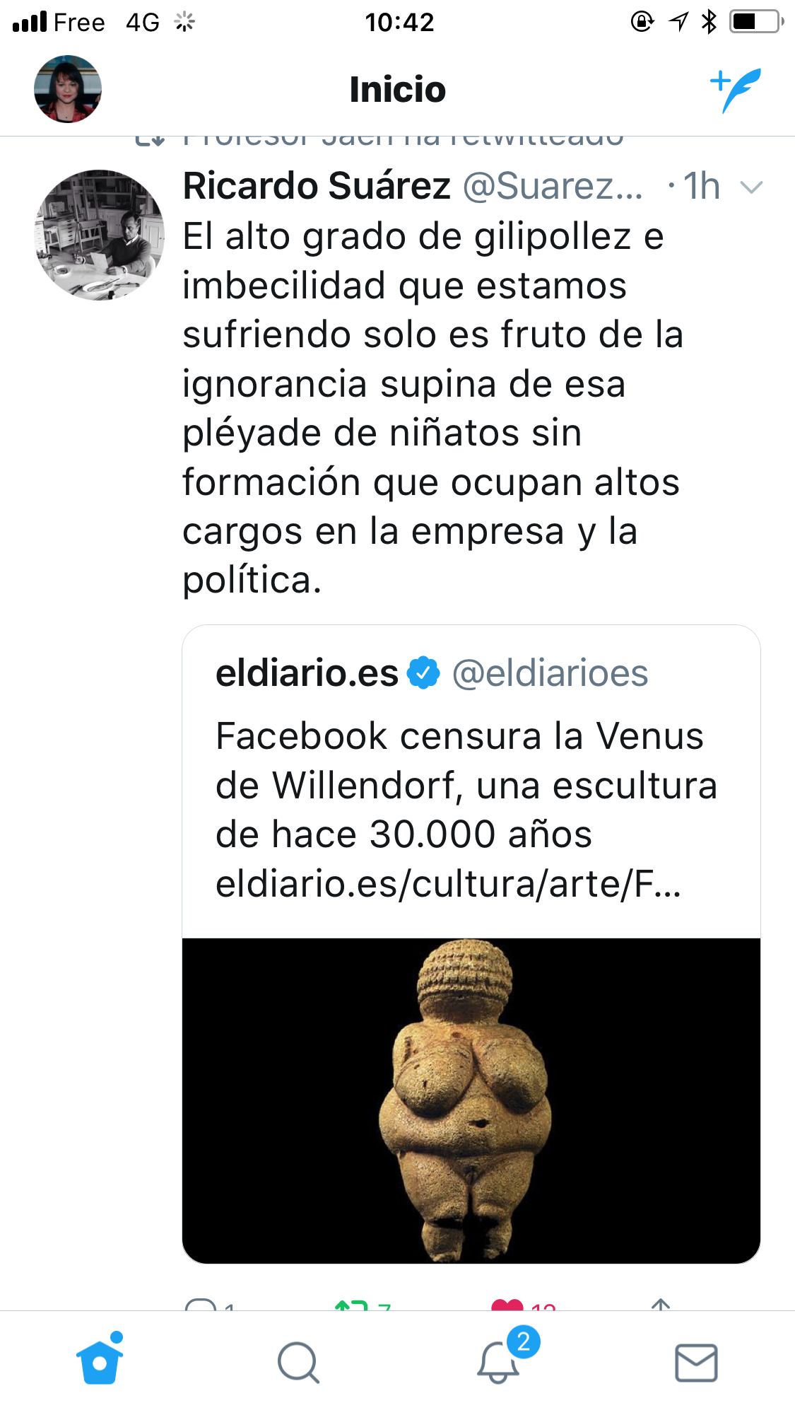 Origen: Facebook censura por «pornográfica» la escultura paleolítica de la Venus de Willendorf.