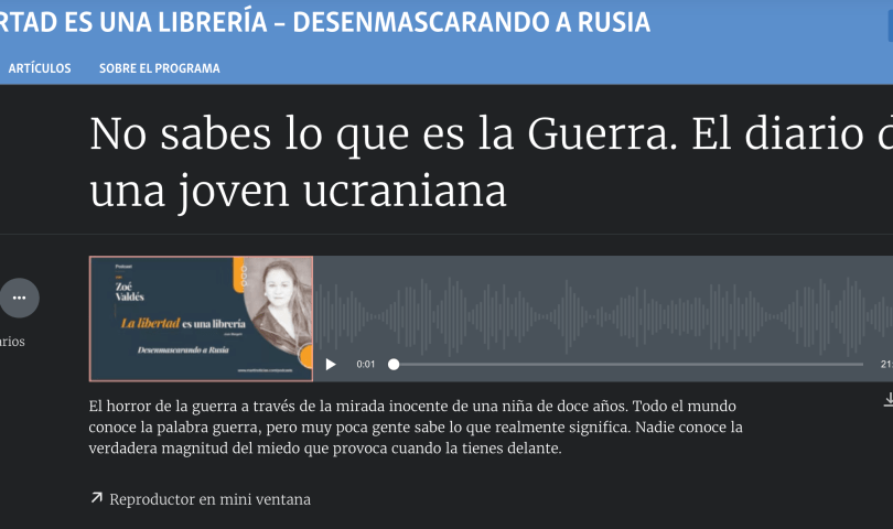 Por Zoé Valdés/Martí Noticias. El horror de la guerra a través de la mirada inocente de una niña de doce años, Yeva Skalietska. Todo el mundo conoce la palabra guerra, pero muy poca gente sabe lo que realmente significa. Nadie conoce la verdadera magnitud del miedo que provoca cuando la tienes delante. Pulse aquí para acceder al sitio.