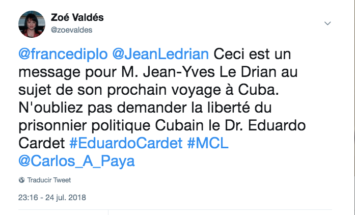 Origen: Jean-Yves Le Drian en visite officielle à Cuba fin juillet. Francia botando 220 millones de euros en Cagonia, ex Cuba. Y mi respuesta inmediata.