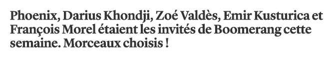 Un rendez-vous culturel, pop et piquant, qui puise dans l’actualité comme dans l’air du temps. Origen: Boomerang par Augustin Trapenard – France Inter. Muchas gracias…